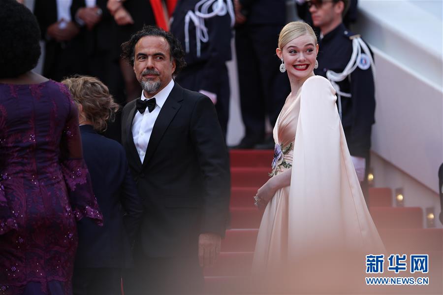 5月14日,在法國南部城市戛納,戛納電影節(jié)主競賽單元評(píng)委墨西哥導(dǎo)演亞歷杭德羅·伊尼亞里圖(左)和美國演員埃勒·范寧亮相開幕式紅毯。 5月14日,第72屆戛納電影節(jié)在戛納開幕。本屆電影節(jié)將持續(xù)至5月25日。 新華社記者 張鋮 攝