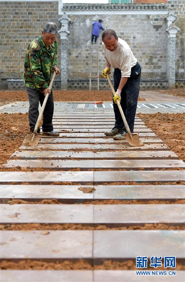 4月28日,在江西省南昌市南昌縣岡上鎮(zhèn)省級文物保護單位“吳氏家廟”內(nèi),搶修工程隊的工人在鋪磚。近年來,江西省南昌市南昌縣推動古村落保護工作。2019年,首批搶修工程隊進駐南昌縣岡上鎮(zhèn),對當?shù)刂氖〖壩奈锉Wo單位“吳氏家廟”及縣級文物保護單位“吳培荊堂古建筑群”進行搶救性維修。同時當?shù)卣€制定文旅規(guī)劃,讓文物保護與觀光旅游相結(jié)合,推動鄉(xiāng)村振興。 新華社記者 彭昭之 攝