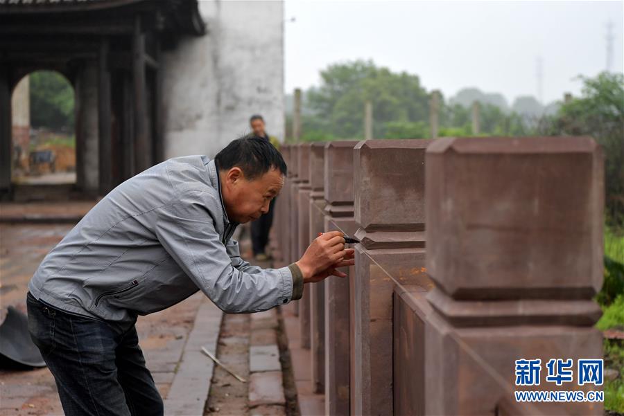 4月28日,在江西省南昌市南昌縣岡上鎮(zhèn)省級文物保護單位“吳氏家廟”內(nèi),搶修工程隊的工人在打磚刻石。近年來,江西省南昌市南昌縣推動古村落保護工作。2019年,首批搶修工程隊進駐南昌縣岡上鎮(zhèn),對當?shù)刂氖〖壩奈锉Wo單位“吳氏家廟”及縣級文物保護單位“吳培荊堂古建筑群”進行搶救性維修。同時當?shù)卣€制定文旅規(guī)劃,讓文物保護與觀光旅游相結(jié)合,推動鄉(xiāng)村振興。 新華社記者 彭昭之 攝