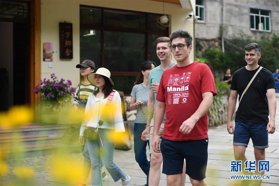 中外游客在石舍村游覽(5月25日攝)。 石舍村是浙江省桐廬縣富春江鄉(xiāng)村慢生活體驗(yàn)區(qū)中的三個(gè)村落之一,位置偏僻,依溪而居,風(fēng)景秀美。近年來(lái),石舍村結(jié)合古建筑保護(hù)工作,在清潔、美化村莊的基礎(chǔ)上,對(duì)一些廢棄古建筑進(jìn)行修繕,引入咖啡館、民宿等文化創(chuàng)意類項(xiàng)目,優(yōu)良的生態(tài)環(huán)境和濃郁的文化氛圍吸引大批游客前來(lái)體驗(yàn),小山村走上了一條發(fā)展美麗經(jīng)濟(jì)之路。2018年,石舍村接待游客10萬(wàn)8千余人次,旅游經(jīng)營(yíng)凈收入1260余萬(wàn)元。 新華社記者 黃宗治 攝