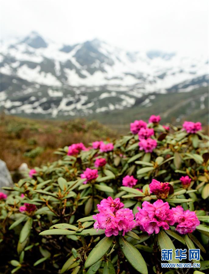 雪山腳下盛開(kāi)的高山杜鵑(5月31日攝)。
