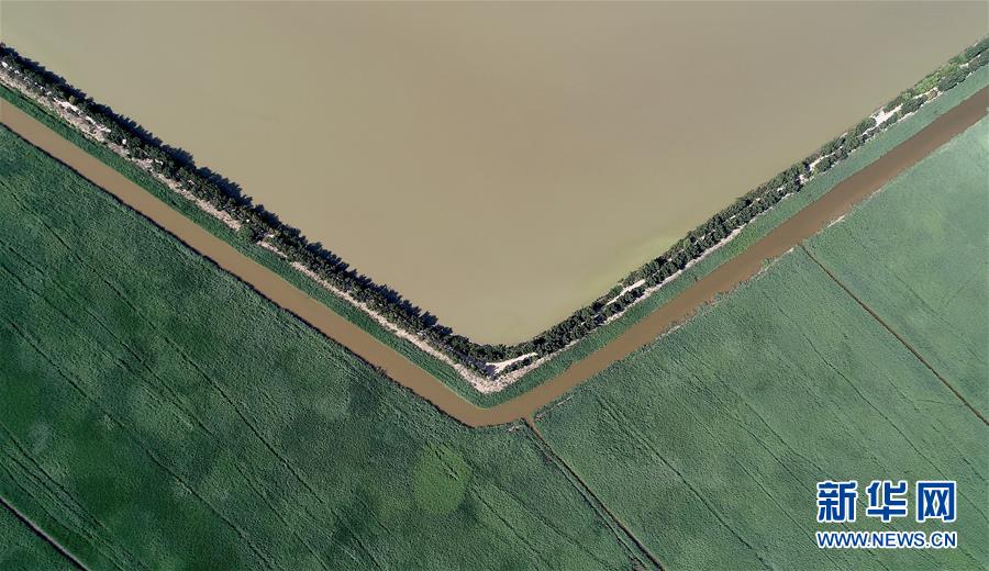 這是天津市寧河區(qū)七里海濕地局部景觀(6月22日無(wú)人機(jī)拍攝)。新華社記者 岳月偉 攝