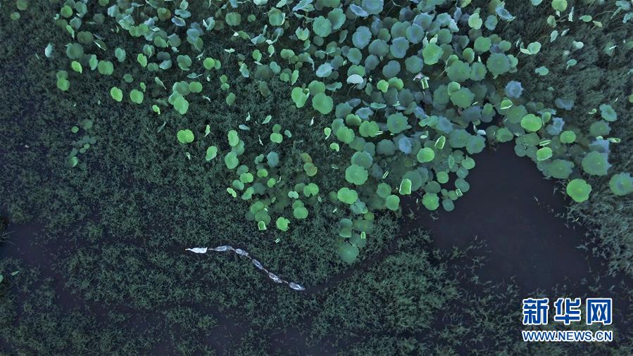 這是8月4日無人機(jī)拍攝的安徽黟縣宏村風(fēng)景區(qū)附近的荷塘。新華社記者 張端 攝