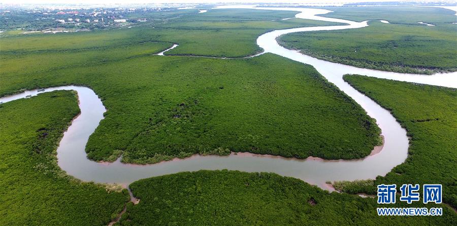 這是位于??诘暮D蠔|寨港國(guó)家級(jí)自然保護(hù)區(qū)內(nèi)的紅樹林(2018年7月24日無(wú)人機(jī)拍攝)。新華社記者郭程攝