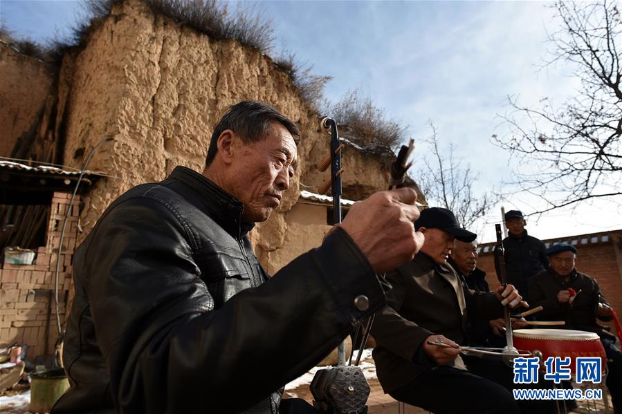 在武鄉(xiāng)縣大有鄉(xiāng)王莊溝村,村民演奏樂器為秧歌隊排練伴奏(2月15日攝)。 新華社記者 詹彥 攝