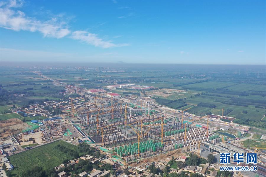 京雄城際鐵路雄安站總建筑面積47萬平方米,地上3層,地下2層,其中地下主體結構將于近期完成,即將轉入地上主體結構施工。 新華社記者 邢廣利 攝