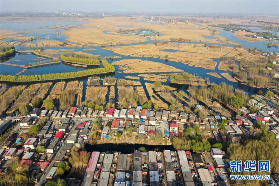3月31日無人機拍攝的雄安新區(qū)白洋淀。新華社記者朱旭東攝