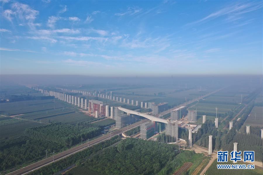 這是8月27日晨無人機(jī)拍攝的轉(zhuǎn)體完成的橋梁。 新華社記者 邢廣利 攝