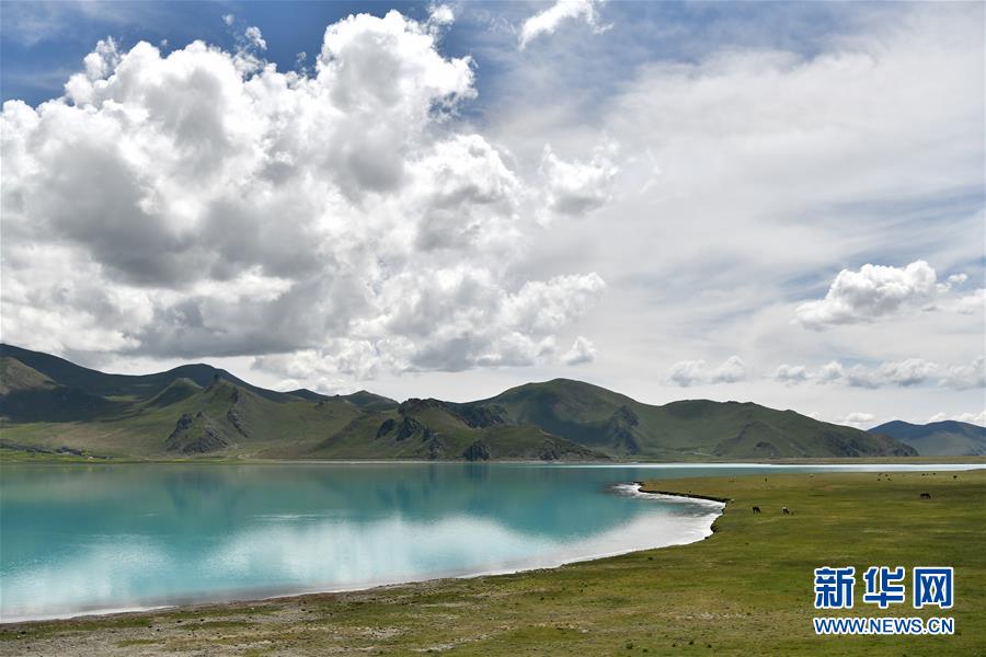 8月28日拍攝的羊卓雍錯(cuò)風(fēng)光。 新華社記者 李鑫 攝