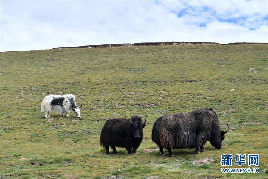 這是在青海省玉樹藏族自治州治多縣治渠鄉(xiāng)同卡村拍攝的牧民合作社草場上的牦牛(9月12日攝)。 新華社記者 孫瑞博 攝