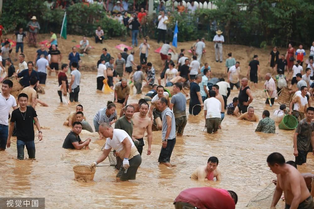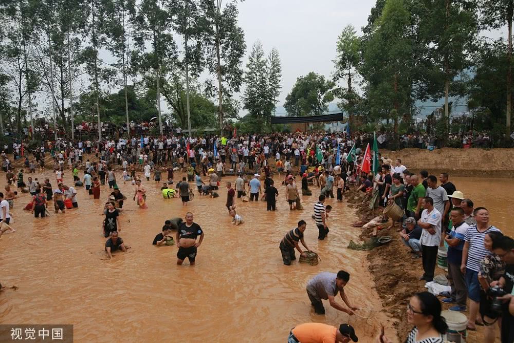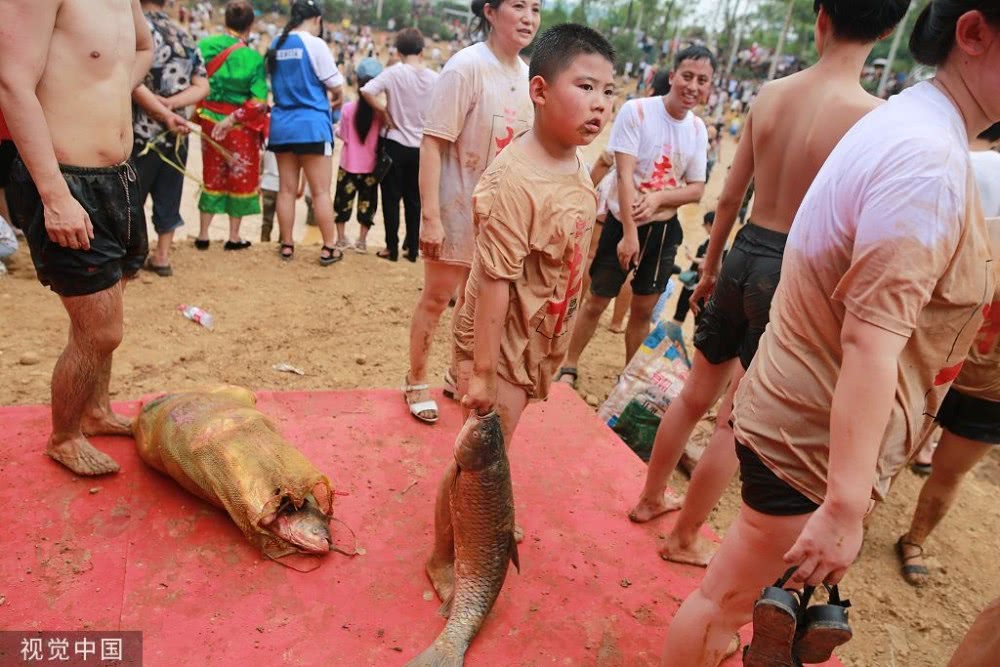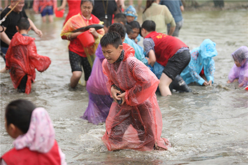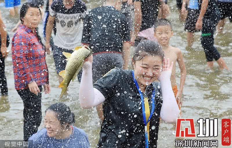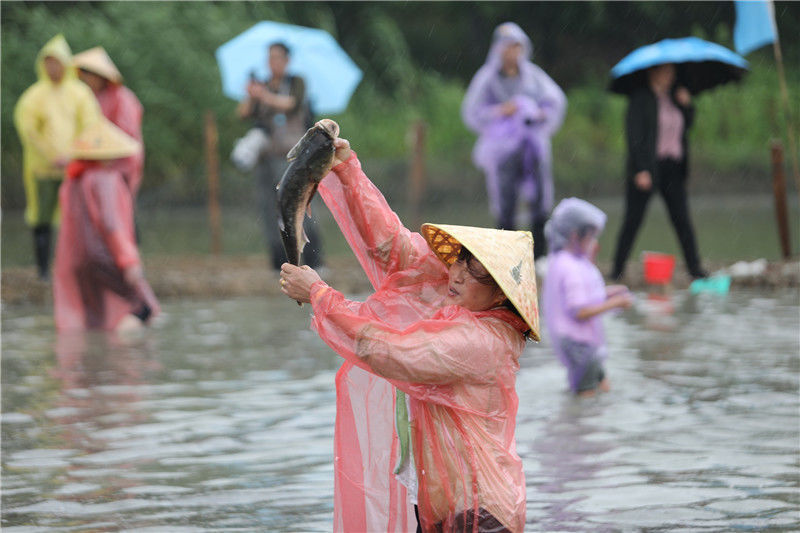 2019年9月7日,重慶,涪陵區(qū)曬秋捉魚活動在紅酒小鎮(zhèn)舉行,現(xiàn)場上演搶魚“大戰(zhàn)”。