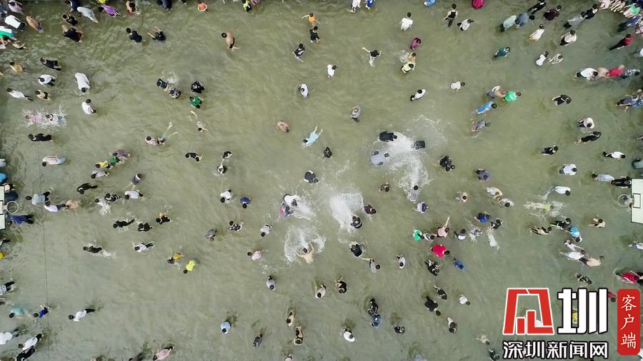 有人撒魚網,有人用網兜,還有人直接徒手捉魚,手段各異引路人圍觀。