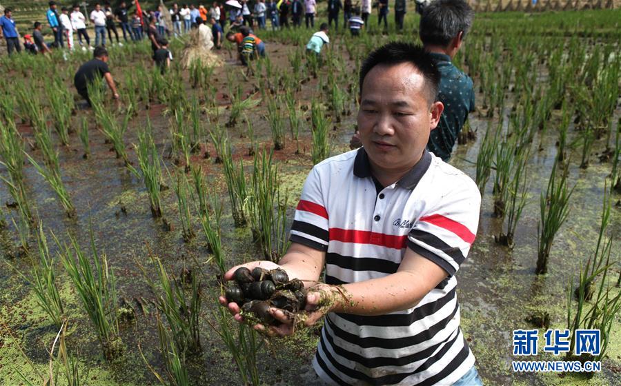 10月28日,在廣西融水苗族自治縣拱洞鄉(xiāng)龍令村,村民參加抓魚比賽。當日,廣西融水苗族自治縣拱洞鄉(xiāng)舉辦香糯泉水螺美食文化節(jié),苗族、侗族、瑤族、壯族等各民族同胞歡聚一堂,通過摸螺抓魚比賽、田螺姑娘評選、跳蘆笙踩堂舞、品香螺百家宴等豐富多彩的活動,慶祝金秋豐收。近年來,拱洞鄉(xiāng)依托生態(tài)資源優(yōu)勢,大力發(fā)展香糯種植、田螺養(yǎng)殖等特色產業(yè)。全鄉(xiāng)的田螺養(yǎng)殖面積4000多畝,成立4家田螺產業(yè)專業(yè)合作社,帶動2000多農戶參與到田螺養(yǎng)殖。目前,田螺養(yǎng)殖已成為當?shù)刎毨裘撠氈赂坏闹匾a業(yè)。新華社記者 黃孝邦 攝