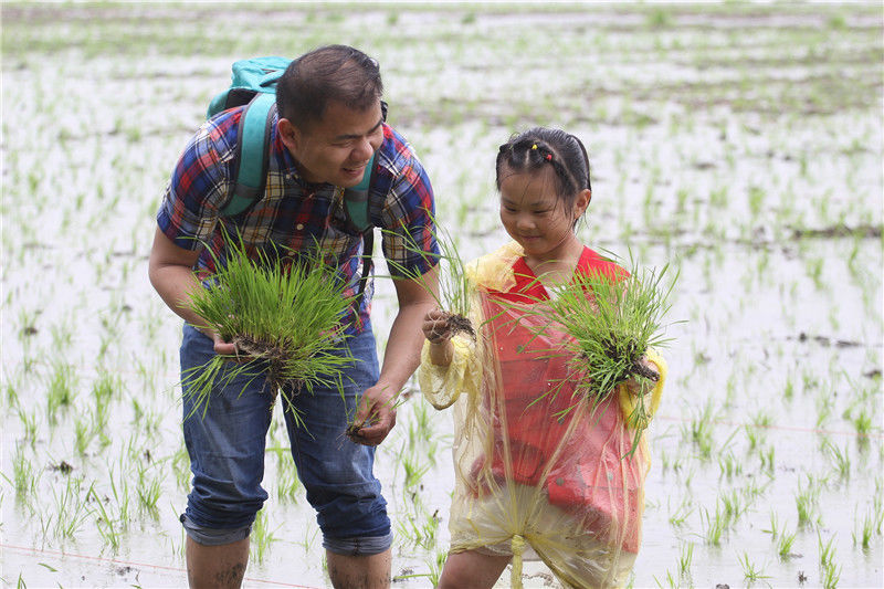 2019年5月26日,江蘇淮安市洪澤區(qū)岔河鎮(zhèn)舉辦“插秧節(jié)”活動,游客通過手工插秧比賽、親子插秧體驗、稻田抓魚、稻田拔河等趣味游戲體驗農耕樂趣,感受田園生活。陳凱/視覺中國 編輯/陳進