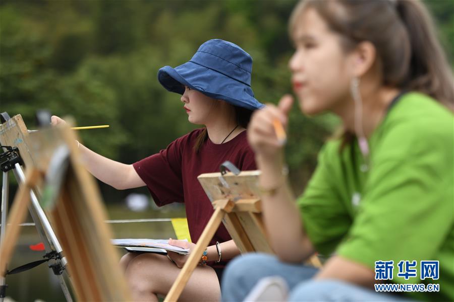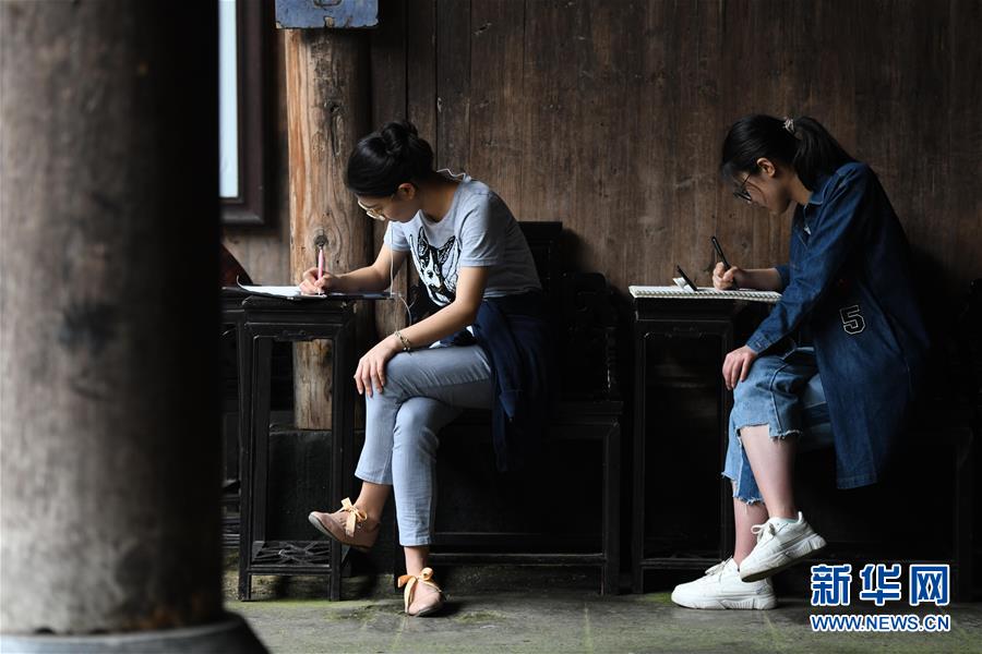 4月24日,繪畫愛好者在西遞風(fēng)景區(qū)寫生。新華社記者任鵬飛攝
