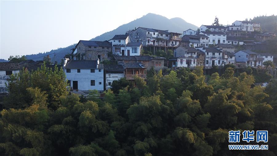 晨曦中的木梨硔村景色(9月18日無人機(jī)拍攝)。9月18日清晨,地處皖南山區(qū)的安徽省黃山市休寧縣木梨硔村沐浴在晨曦之中,靜謐祥和。新華社記者張端攝