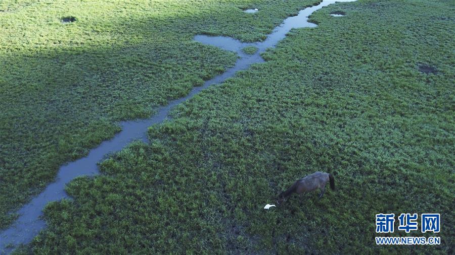 這是8月4日無人機(jī)拍攝的安徽黟縣宏村風(fēng)景區(qū)附近的荷塘。新華社記者張端攝