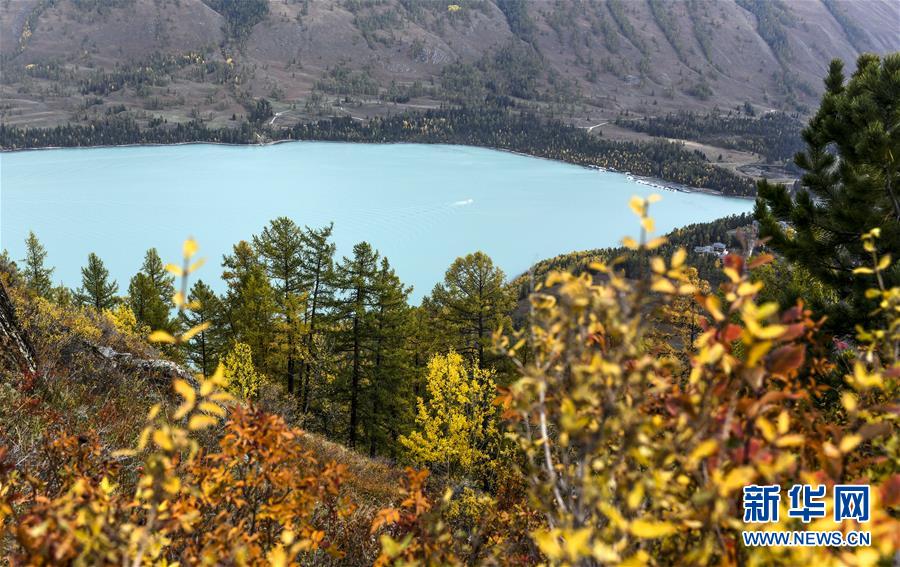 9月23日拍攝的喀納斯景區(qū)風(fēng)光。 金秋時(shí)節(jié),位于新疆阿勒泰地區(qū)的喀納斯景區(qū)內(nèi)的林木與喀納斯湖相互映襯,美不勝收。 新華社記者 王菲 攝