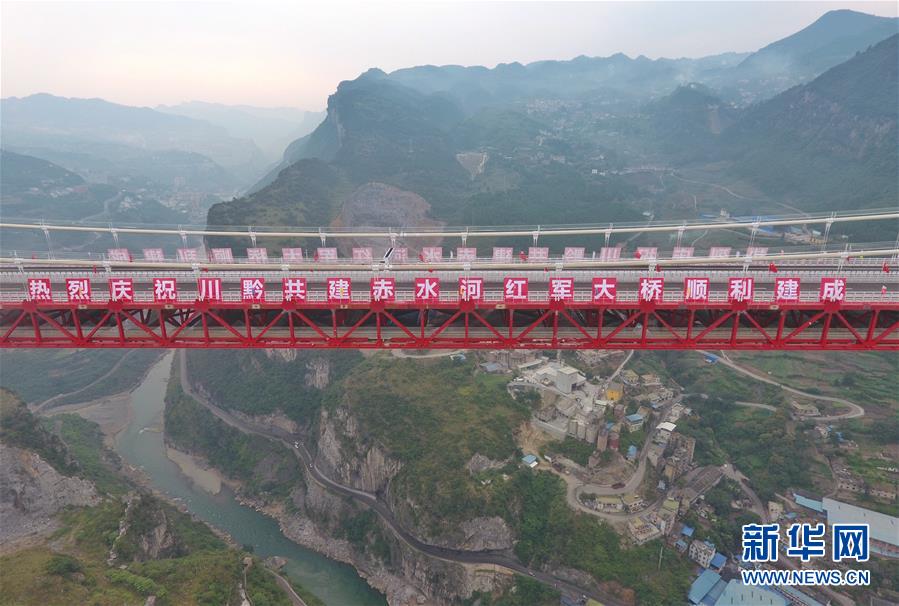 9月30日無(wú)人機(jī)拍攝的赤水河紅軍大橋。新華社記者劉坤攝