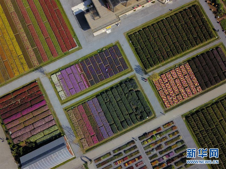 北京世園會(huì)園藝小鎮(zhèn)(10月7日無(wú)人機(jī)拍攝)。新華社記者鞠煥宗攝