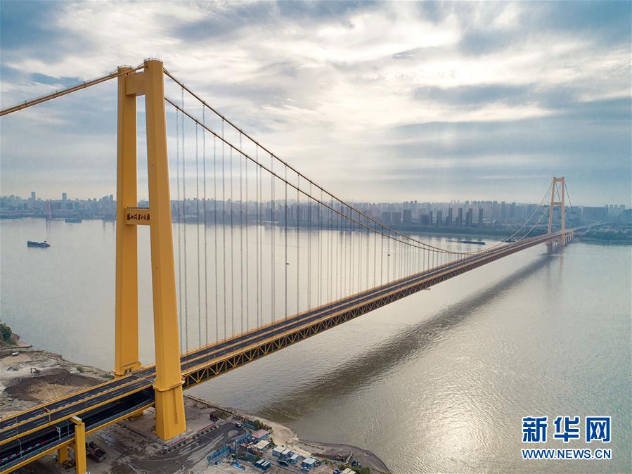 楊泗港大橋建設(shè)創(chuàng)造了多項(xiàng)世界之最:一是主橋跨度達(dá)1700米,為世界上跨度最大的雙層懸索橋;二是主橋設(shè)置雙層雙向12車道,是世界上通行能力最大的公路橋梁;三是大橋主纜設(shè)計(jì)張力6.5萬(wàn)噸,采用了世界上強(qiáng)度等級(jí)最高的主纜鋼絲;四是大橋設(shè)置機(jī)動(dòng)車道、非機(jī)動(dòng)車道、人行觀光道,集過(guò)江交通與觀光于一體,是長(zhǎng)江上功能最完備的橋梁。新華社記者熊琦攝