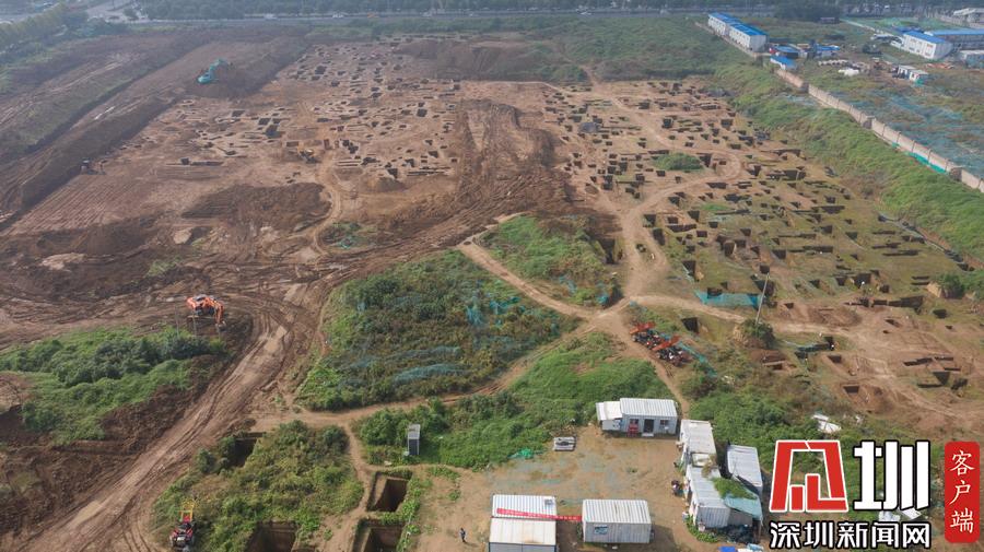 西安宜家工地挖出古墓 空中俯瞰數(shù)百墓坑密密麻麻