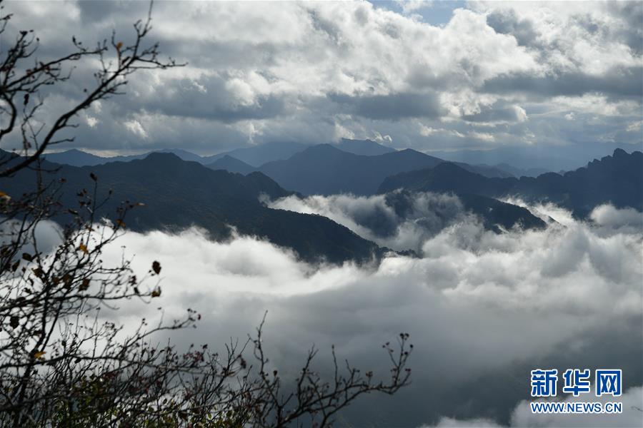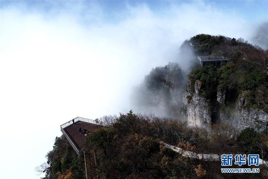 10月17日,游客在漢中市南鄭區(qū)龍頭山風(fēng)景區(qū)拍照。 陜西省漢中市南鄭區(qū)龍頭山風(fēng)景區(qū)位于川陜交界處米倉(cāng)山主梁。龍頭山景區(qū)常年云霧繚繞,宛如仙境,還有奇石、云海、彩林、霧凇等景觀(guān)令游客流連忘返。 新華社記者 張博文 攝
