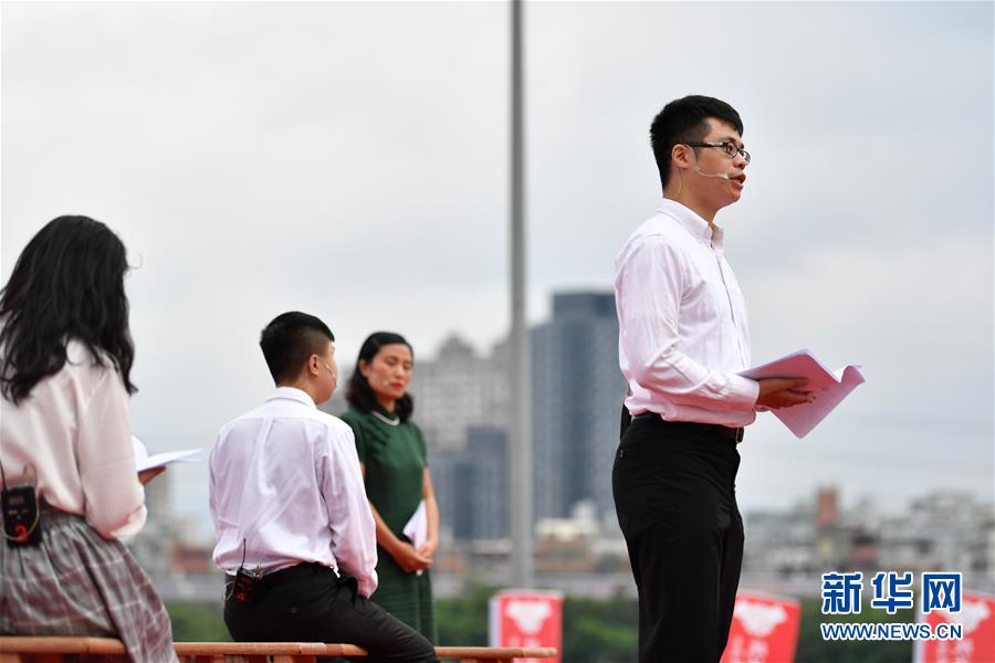 10月19日,參與秋祭活動的年輕人在活動現(xiàn)場表演行動劇《激進(jìn)1949》。 新華社記者 陳斌 攝