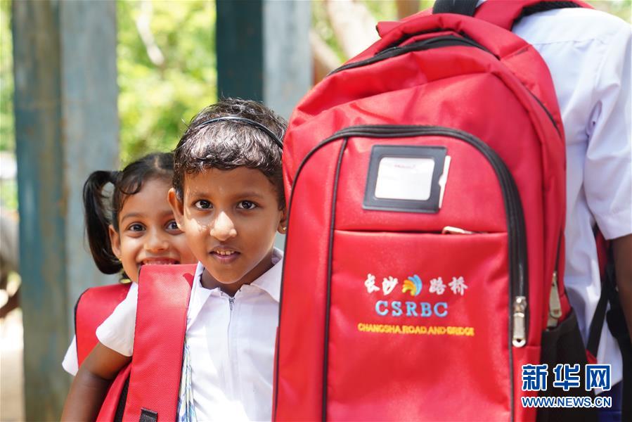 10月18日,在斯里蘭卡漢班托塔地區(qū)的提薩普拉學(xué)校,幾名學(xué)生領(lǐng)到中國企業(yè)贊助的書包。 18日,斯里蘭卡南方省漢班托塔地區(qū)的提薩普拉學(xué)校洋溢著一派歡天喜地的氣氛,全校師生及家長共同慶祝由中國招商局慈善基金會援建的兩層新教學(xué)樓正式落成,許多學(xué)生當(dāng)天還領(lǐng)到了中國企業(yè)贊助的嶄新書包。附近地區(qū)的其他學(xué)校校長和村民也紛紛趕來參加儀式。 新華社記者唐璐攝