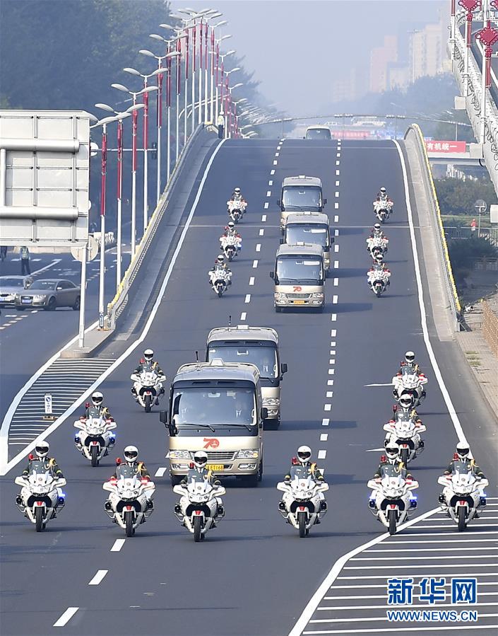 9月29日上午,國(guó)家勛章和國(guó)家榮譽(yù)稱(chēng)號(hào)獲得者乘坐禮賓車(chē)從住地出發(fā),在國(guó)賓護(hù)衛(wèi)隊(duì)的護(hù)衛(wèi)下,前往人民大會(huì)堂參加中華人民共和國(guó)國(guó)家勛章和國(guó)家榮譽(yù)稱(chēng)號(hào)頒授儀式。 新華社記者 燕雁 攝