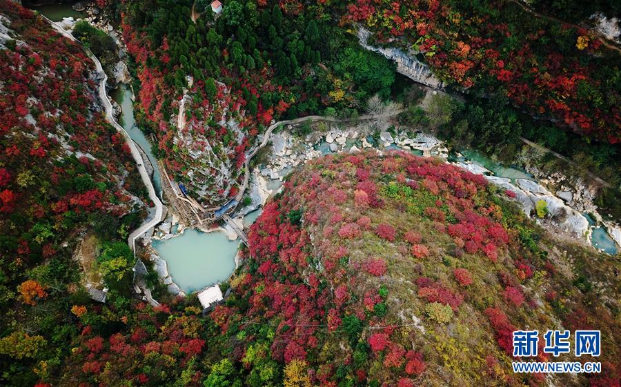 金秋時節(jié),甘肅省隴南市成縣西狹頌景區(qū)層林盡染,峽內石崖、池潭、樹木、山峰構成五彩斑斕的秋日美景圖,引人入勝。