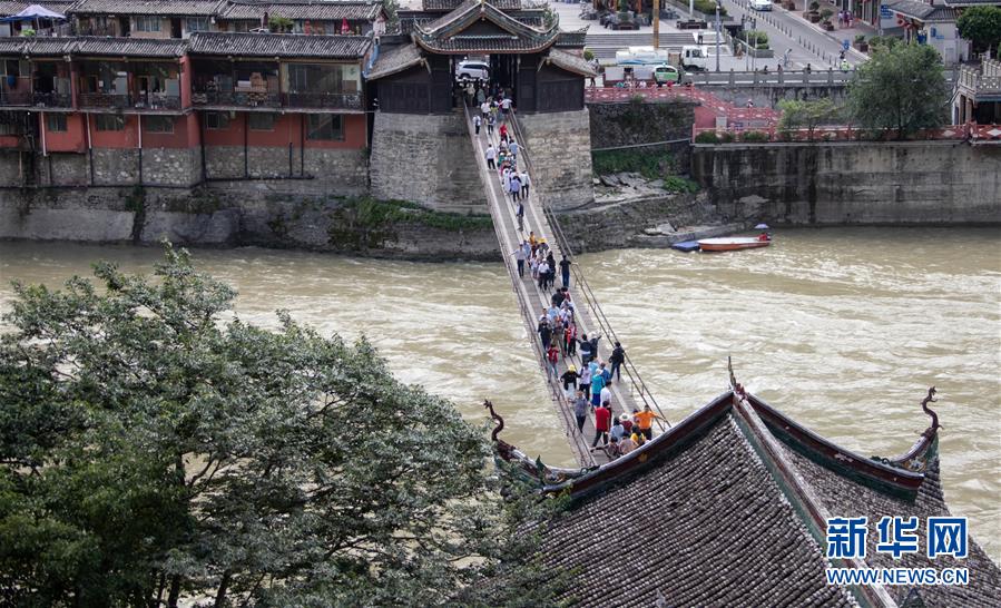 這是大渡河上的瀘定橋(6月27日攝)。 金秋十月,中國最美景觀大道——川藏線上,中外游客絡繹不絕。途經雅康高速上身披“紅妝”的瀘定大渡河大橋,人們無不為其雄壯所震撼。環(huán)其周圍,瀘定大渡河上還有瀘定橋、瀘定大渡河吊橋等大橋巍然佇立,數(shù)橋并跨交相輝映,見證了中國橋梁建設的光榮與夢想。 新華社記者 江宏景 攝