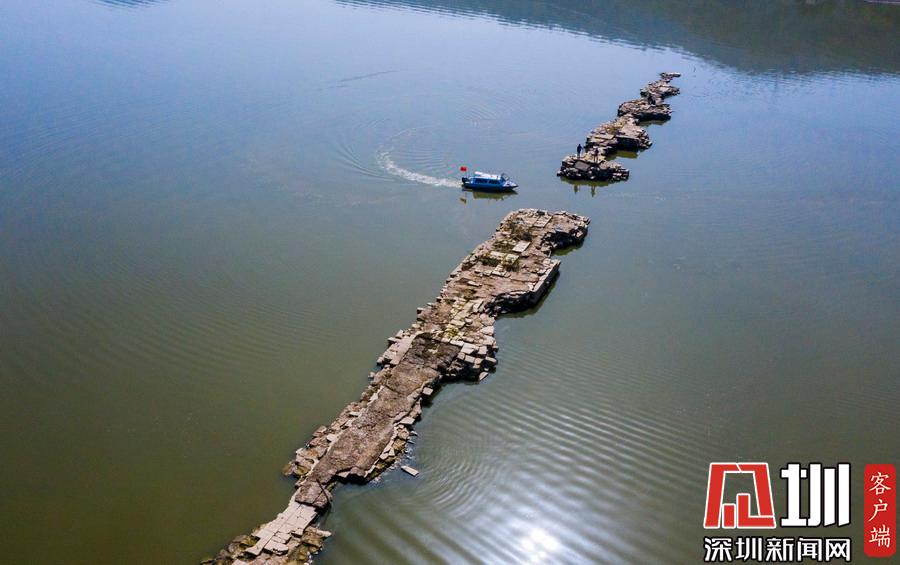 受天氣影響,建于明嘉靖三十五年(公元1556年)的萬年橋提前浮出水面。