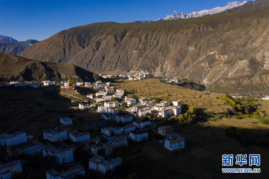 10月29日無人機拍攝的鄉(xiāng)城縣青麥鄉(xiāng)南吾村藏鄉(xiāng)田園風(fēng)光。新華社記者江宏景攝