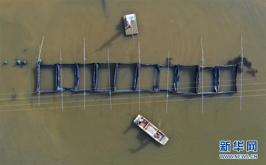 江西省南昌市新建區(qū)象山鎮(zhèn)河林村的農(nóng)戶正在大閘蟹養(yǎng)殖基地進(jìn)行捕撈(10月29日無(wú)人機(jī)拍攝)。 時(shí)下正值大閘蟹收獲的季節(jié),江西省南昌市新建區(qū)象山鎮(zhèn)河林村的村民忙著進(jìn)行大閘蟹的捕撈、包裝和外銷工作。近年來(lái),當(dāng)?shù)匾劳休爡^(qū)內(nèi)河道縱橫、水田眾多的資源優(yōu)勢(shì),支持鼓勵(lì)當(dāng)?shù)剞r(nóng)村引進(jìn)發(fā)展大閘蟹養(yǎng)殖業(yè),目前已有大閘蟹特色養(yǎng)殖基地300余畝,年產(chǎn)值超過(guò)200萬(wàn)元,為當(dāng)?shù)剞r(nóng)戶開辟一條特色養(yǎng)殖的致富路。 新華社記者 彭昭之 攝