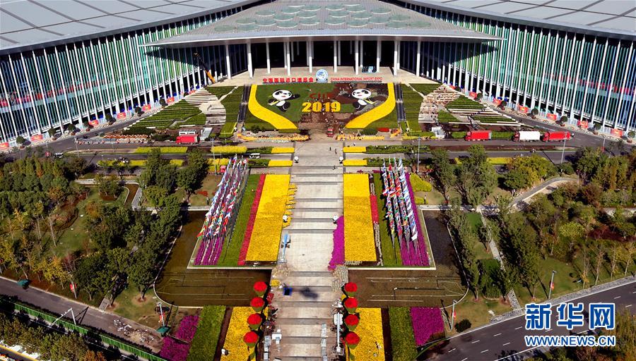 從空中俯瞰國家會展中心(上海)南廣場(11月1日無人機拍攝)。 新華社記者 凡軍 攝