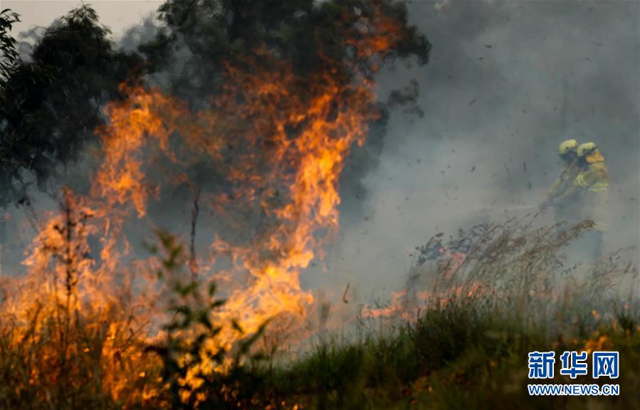 11月11日,在澳大利亞新南威爾士州塔里附近的山地,消防員在撲滅山火。新華社記者白雪飛攝