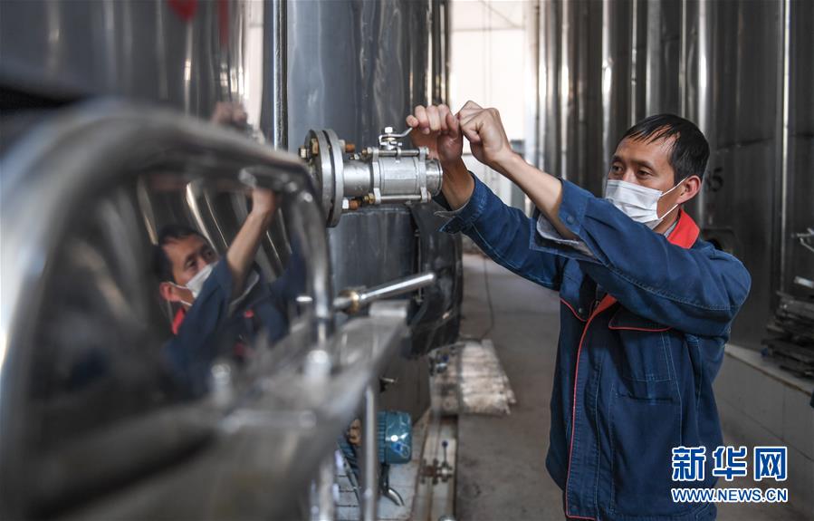 西藏芒康縣藏東珍寶酒業(yè)有限公司的工人在檢修制酒設(shè)備(6月3日攝)。新華社記者晉美多吉攝