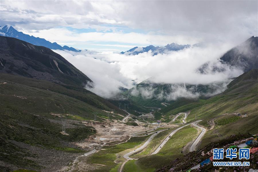 這是在川藏公路四川折多山埡口拍攝的曲折回旋的川藏公路(6月28日攝)。新華社記者江宏景攝