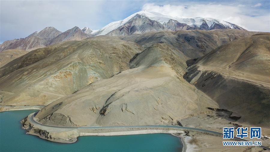 這是在新疆阿克陶縣布倫口水庫附近拍攝的一段喀喇昆侖公路(2017年11月9日無人機拍攝)。新華社記者胡虎虎攝