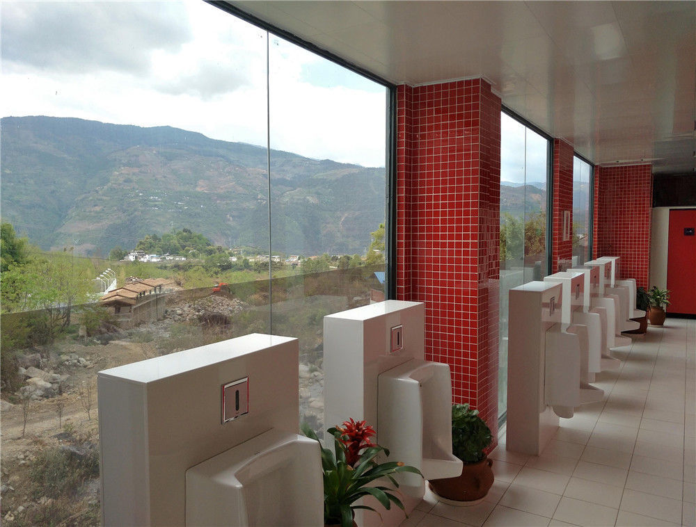 2017年4月7日,云南省大理州石門(mén)關(guān)景區(qū)的透明廁所。廁所外觀落地玻璃采用單透膜,讓游客邊上廁所,還可以邊欣賞景區(qū)優(yōu)美的風(fēng)景。李明/視覺(jué)中國(guó)