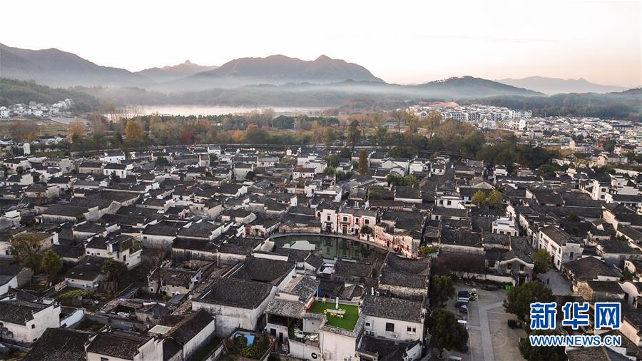 這是11月15日無人機拍攝的宏村風景區(qū)晨景。新華社記者韓曉雨攝