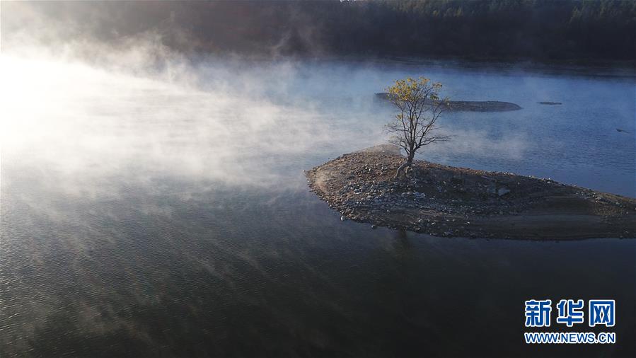 這是11月14日無人機拍攝的安徽黟縣奇墅湖晨景。新華社記者張笑宇攝