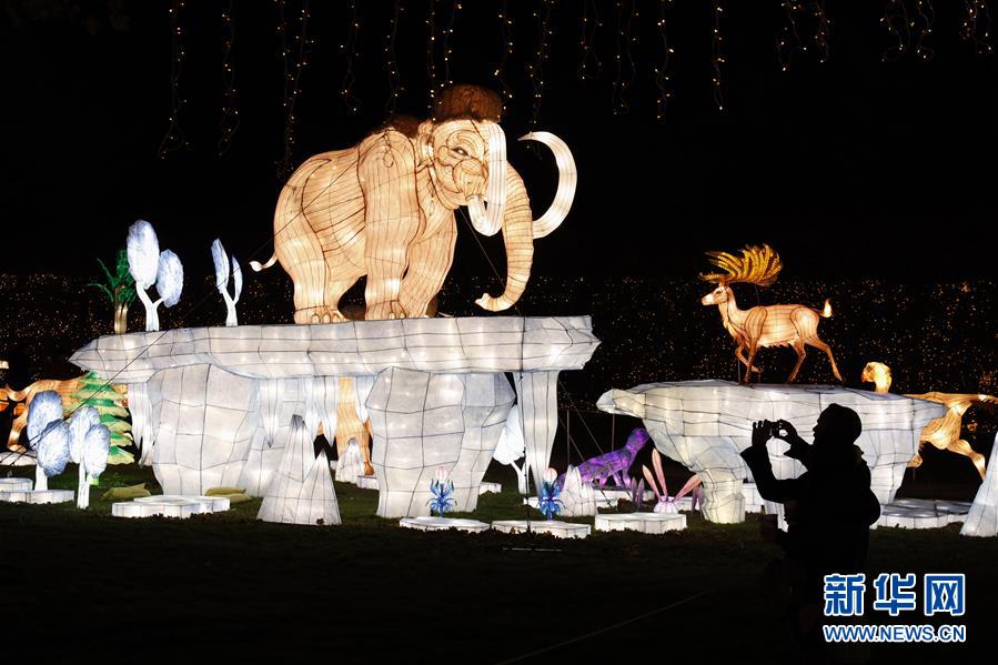 這是11月20日在美國(guó)紐約斯塔滕島第二屆紐約花燈游園會(huì)上拍攝的恐龍花燈。當(dāng)日,第二屆紐約花燈游園會(huì)在美國(guó)紐約斯塔滕島開幕,50余組各類花燈照亮夜空,吸引觀眾前來(lái)賞燈游玩。新華社記者李木子攝