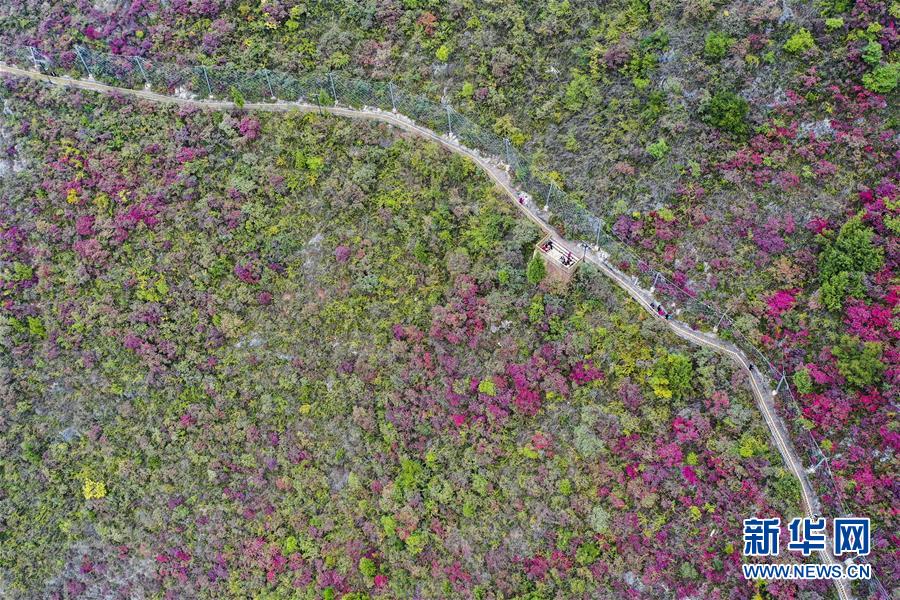 11月23日,游客在位于長江巫峽段的巫山文峰景區(qū)游覽(無人機拍攝)。初冬時節(jié),位于重慶巫山縣境內(nèi)的長江巫峽段呈現(xiàn)出一江碧水東流、兩岸層林盡染的秀美景象。新華社記者王全超攝