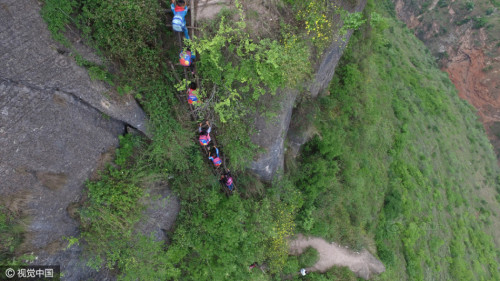 4月27日,阿土勒爾村的一個(gè)村民摔下了懸崖,村子里的大人對(duì)在山下讀書的孩子更加擔(dān)心起來(lái)。阿土勒爾村有15個(gè)6至15歲的孩子在山腳下的勒爾小學(xué)上學(xué),平時(shí)住校,每月月中和月底的周末才回家。每次上下山,家長(zhǎng)們都會(huì)輪流接送。圖片來(lái)源:視覺中國(guó)