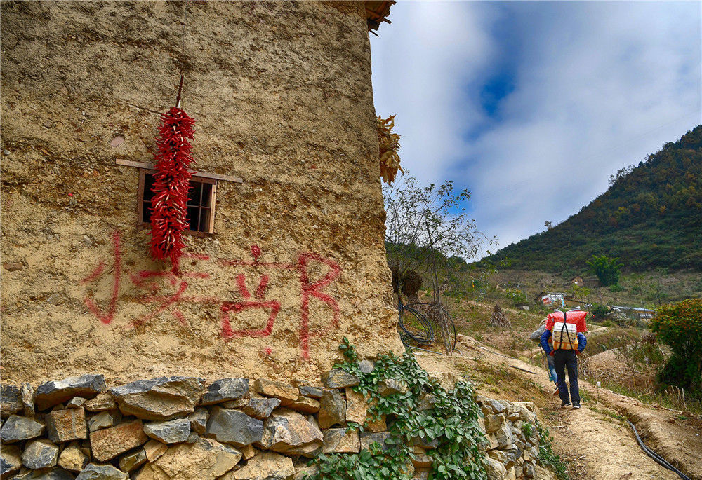 實拍懸崖村的“雙十一” 背著快遞包裹上天梯