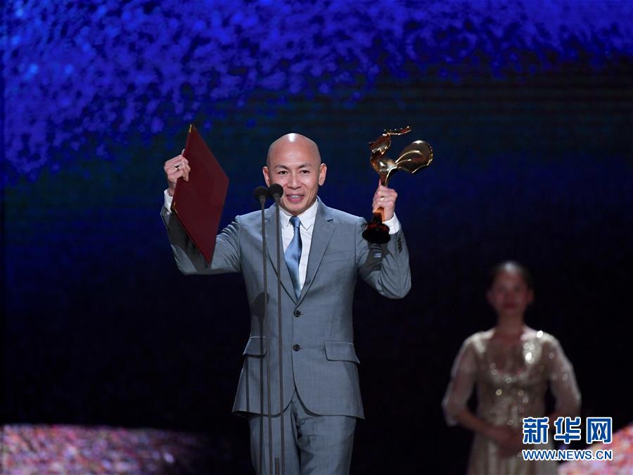 11月23日,電影《紅海行動(dòng)》導(dǎo)演林超賢獲得最佳導(dǎo)演獎(jiǎng)。 當(dāng)日,第32屆中國電影金雞獎(jiǎng)?lì)C獎(jiǎng)典禮在福建廈門舉行。 新華社記者姜克紅攝