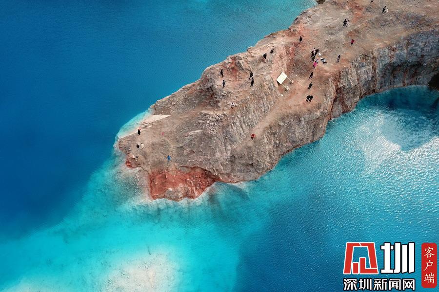 藍色的湖體和礦坑的巖石相襯下酷似“馬爾代夫”旅游景點,成為“網(wǎng)紅”,一時間吸引了眾多游客前來觀光打卡。