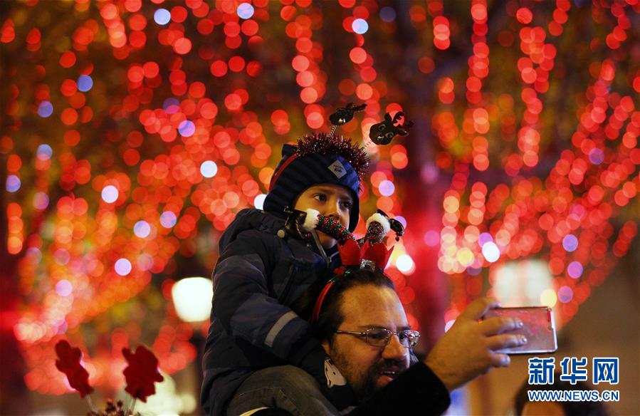 11月24日,在法國巴黎,人們在香榭麗舍大街上參加點燈儀式。當日,法國巴黎香榭麗舍大街點亮彩燈迎圣誕。從即日起至1月8日,整條香榭麗舍大街都將被喜慶的節(jié)日燈飾點亮。新華社記者高靜攝